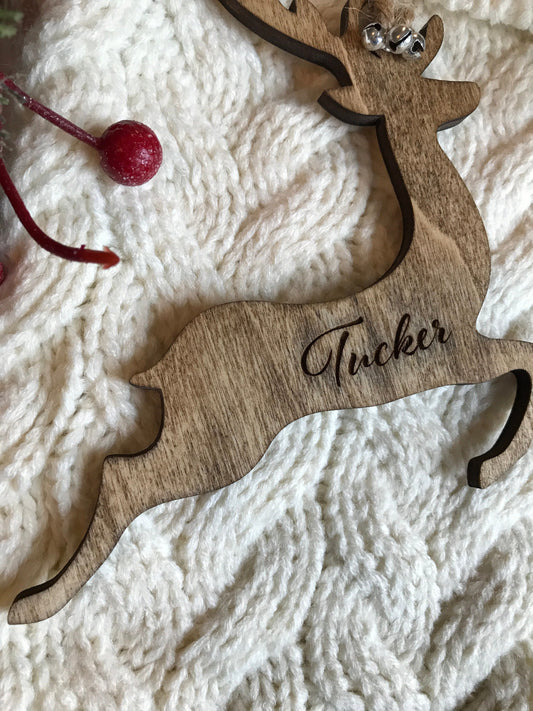 Reindeer Personalized Christmas Stocking Tag or Ornament