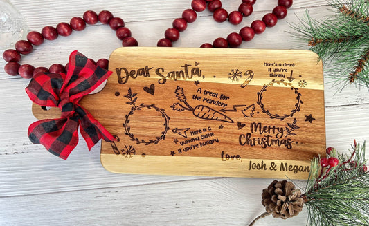 Personalized Santa Cookie Plate, Santa Milk & Cookie Cutting Board
