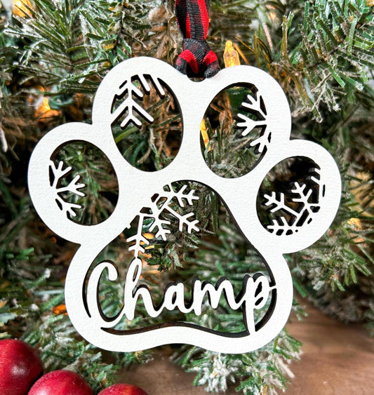 Paw Christmas Ornament with Personalized Name, for Dog or Cat