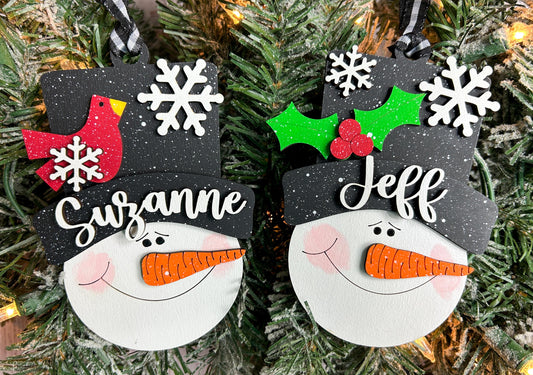Snowman Ornament with Custom Name, Snowmen Family Ornament