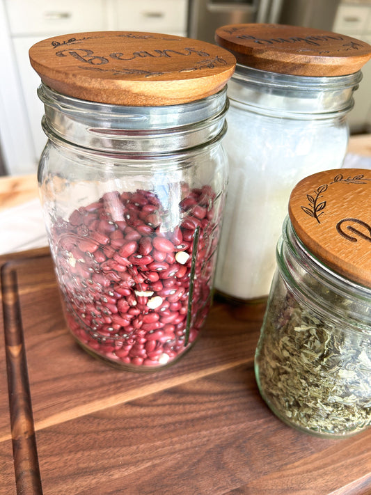 Personalized Wood Mason Jar Lids, Engraved Lids, Set of 6