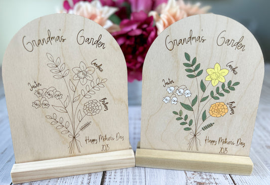 Personalized Birth Flower Bouquet Sign for Mom or Grandma