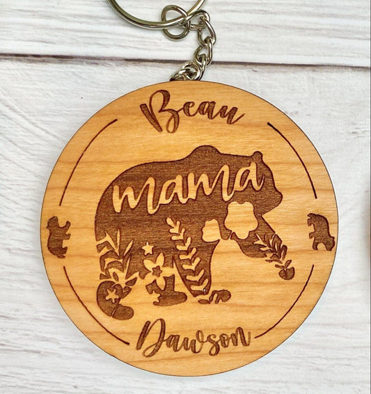 Mama Bear Keychain with Personalized Child's Names Engraved