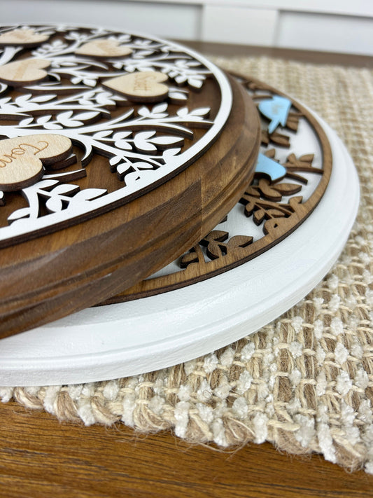 Personalized Family Tree Wood Sign with Birds or Hearts