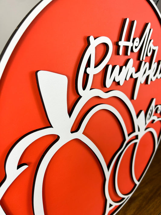 Hello Pumpkin Fall Door Hanger, Wooden Pumpkin Fall Wreath