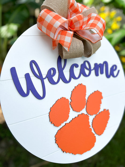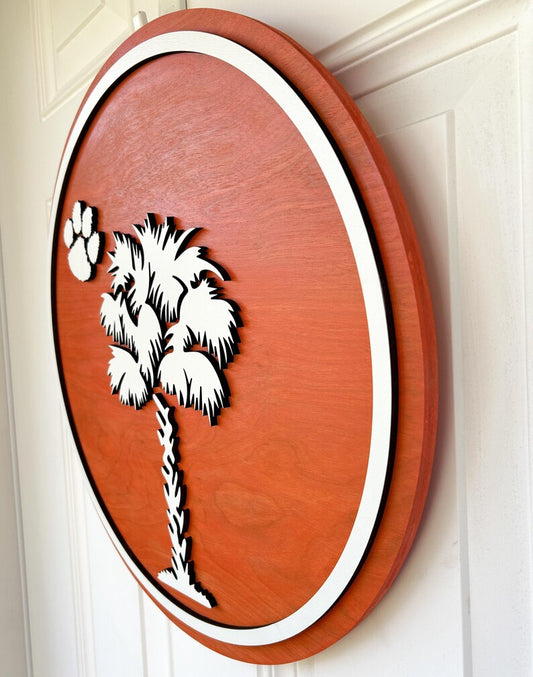 Clemson Tiger Paw and Palmetto Wood Sign