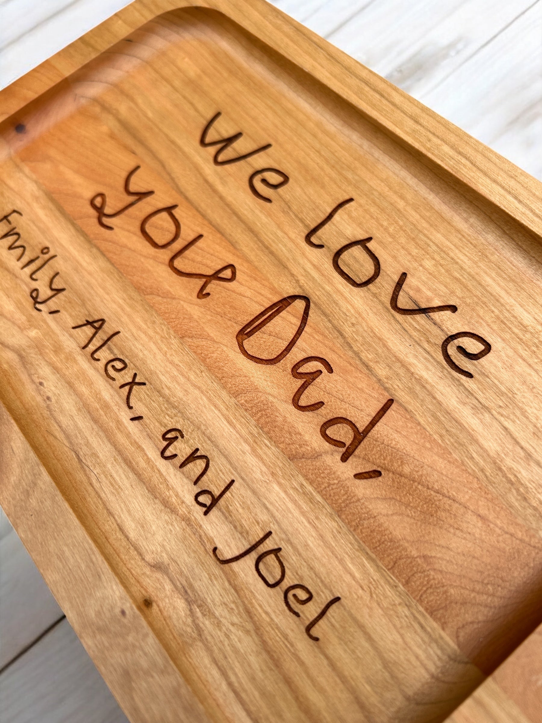 Wooden Valet Tray Engraved with Child's Drawing, Handprint, or Message